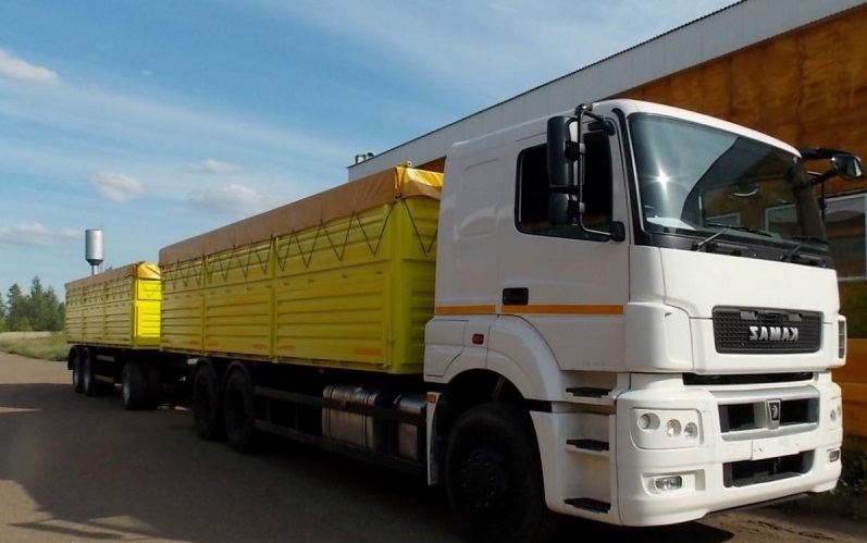 Зерновоз самосвал на базе шасси КАМАЗ 65117 с прицепом.